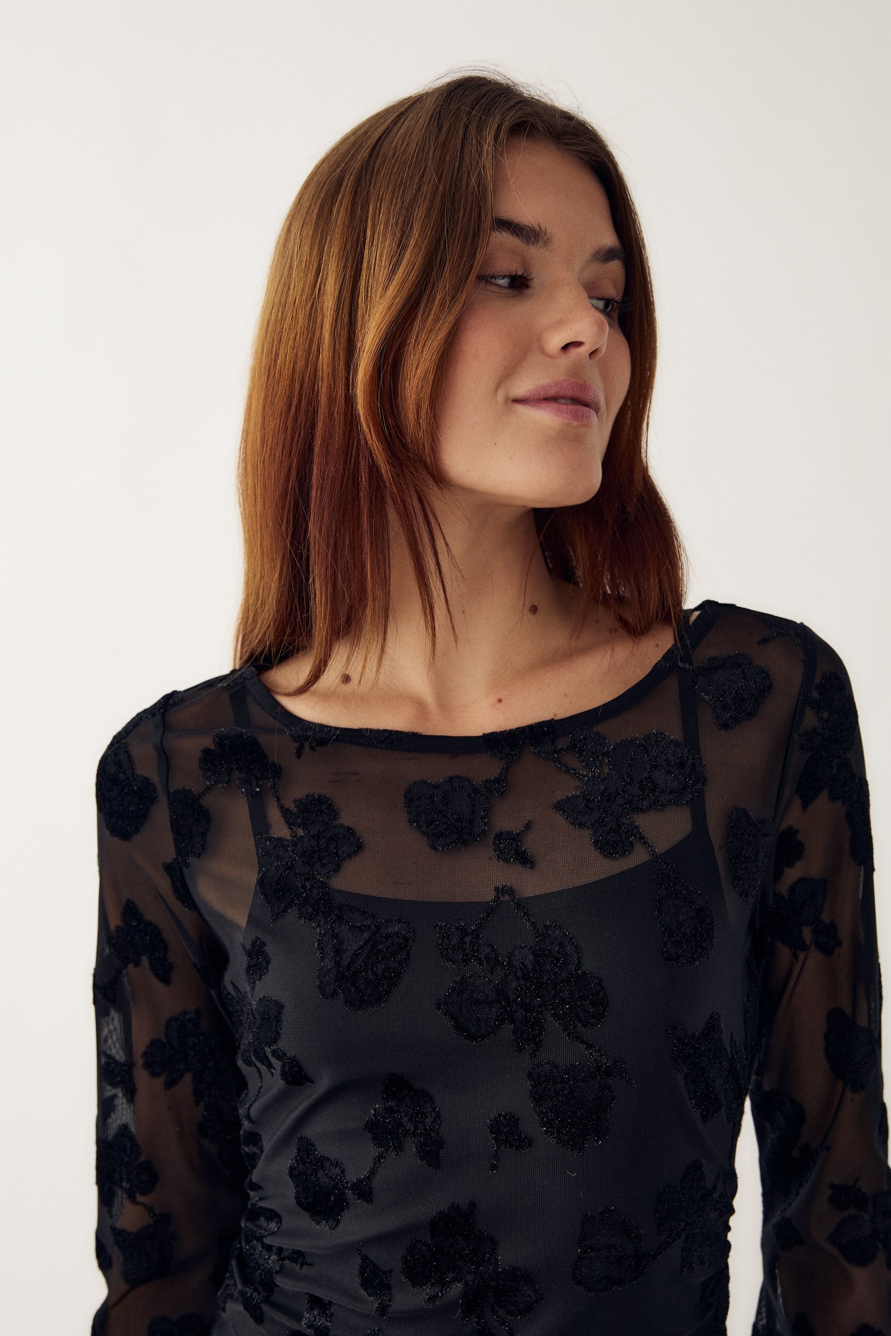 Laurette Dress is a long dress with long sleeves and a side slit. Floral prints woven into the fabric add an elegant, luxurious touch. Pair with heels and a chic bag for special occasions to create a refined and stylish look.