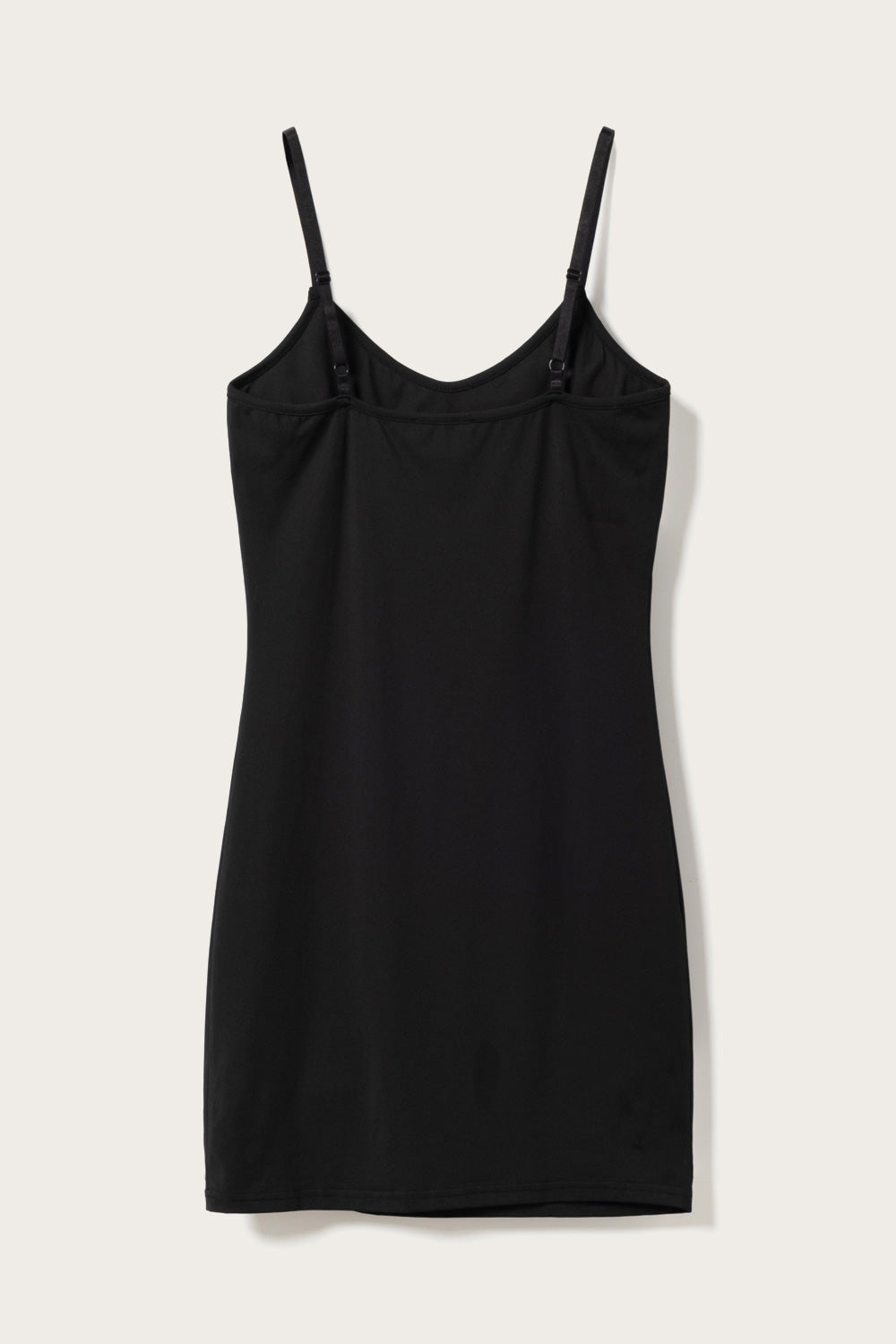 Layden Dress is a classic slip dress with thin, delicate straps and a fitted silhouette.