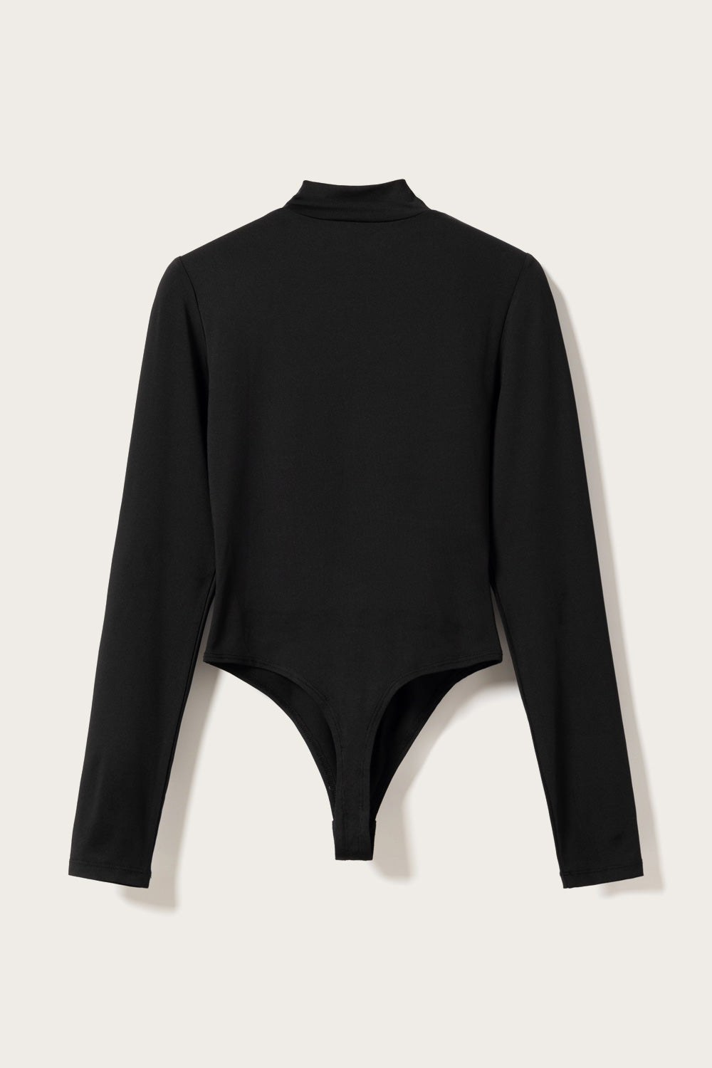 Lesley Bodystocking is a long-sleeved bodystocking with a high neckline. Crafted from soft and stretchy material, it has a tailored fit that creates a sleek and comfortable look. Pair it with jeans for an edgy outfit or dress it up with a blazer for a polished style.