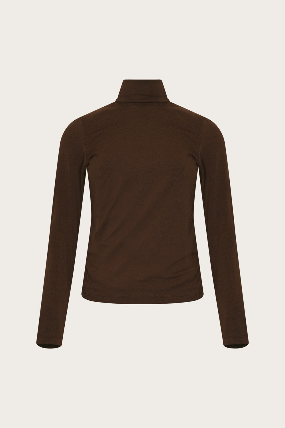 Libinette Top is a long-sleeved blouse in viscose with a high turtleneck. The blouse has a fitted silhouette.