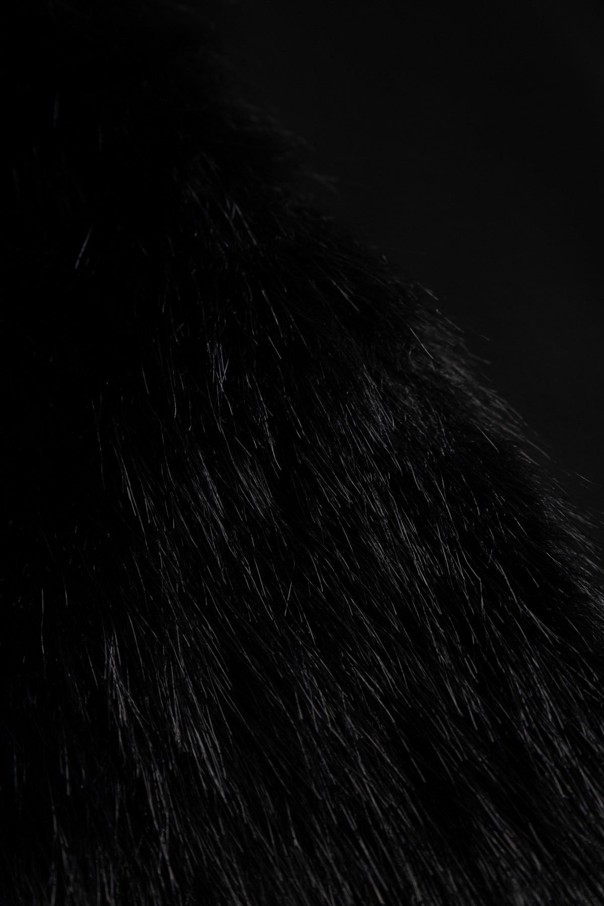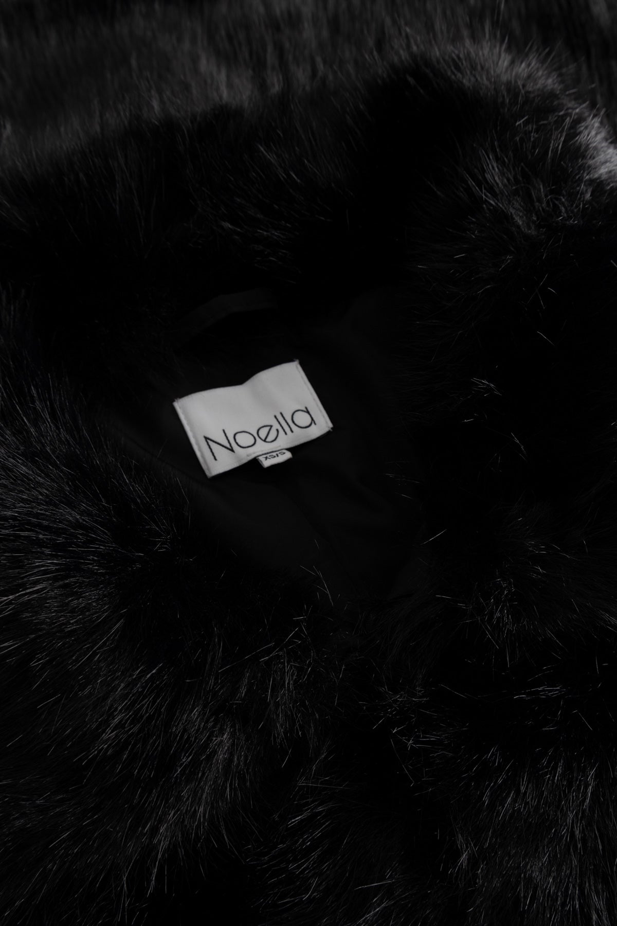 Lizz Jacket is a faux fur jacket with a high neckline that can also be styled as a collar. The jacket has a mid length and a loose fit.