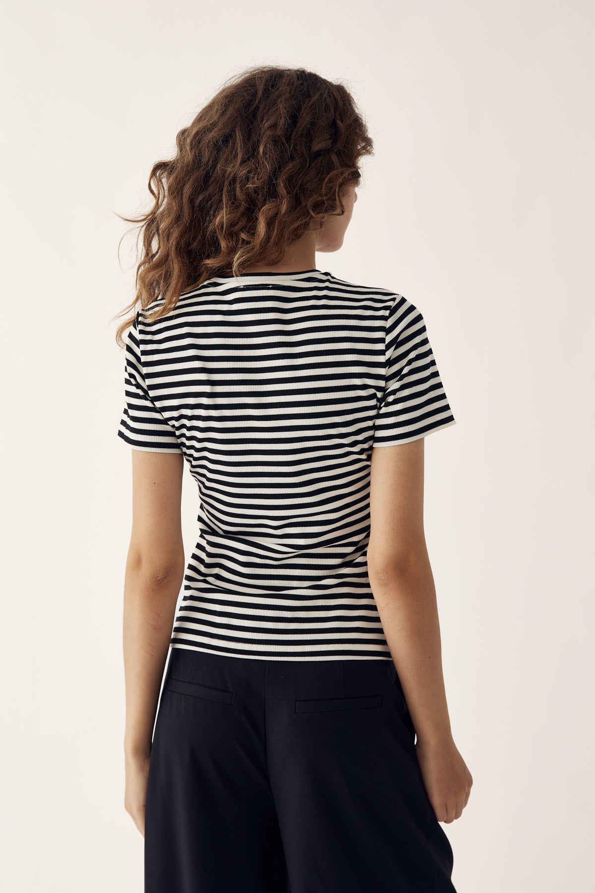 Lizzy Top is a short-sleeved T-shirt with a striped pattern and round neckline. Lizzy Top has a regular fit, creating a relaxed and simple look. Use it as part of your basic wardrobe.