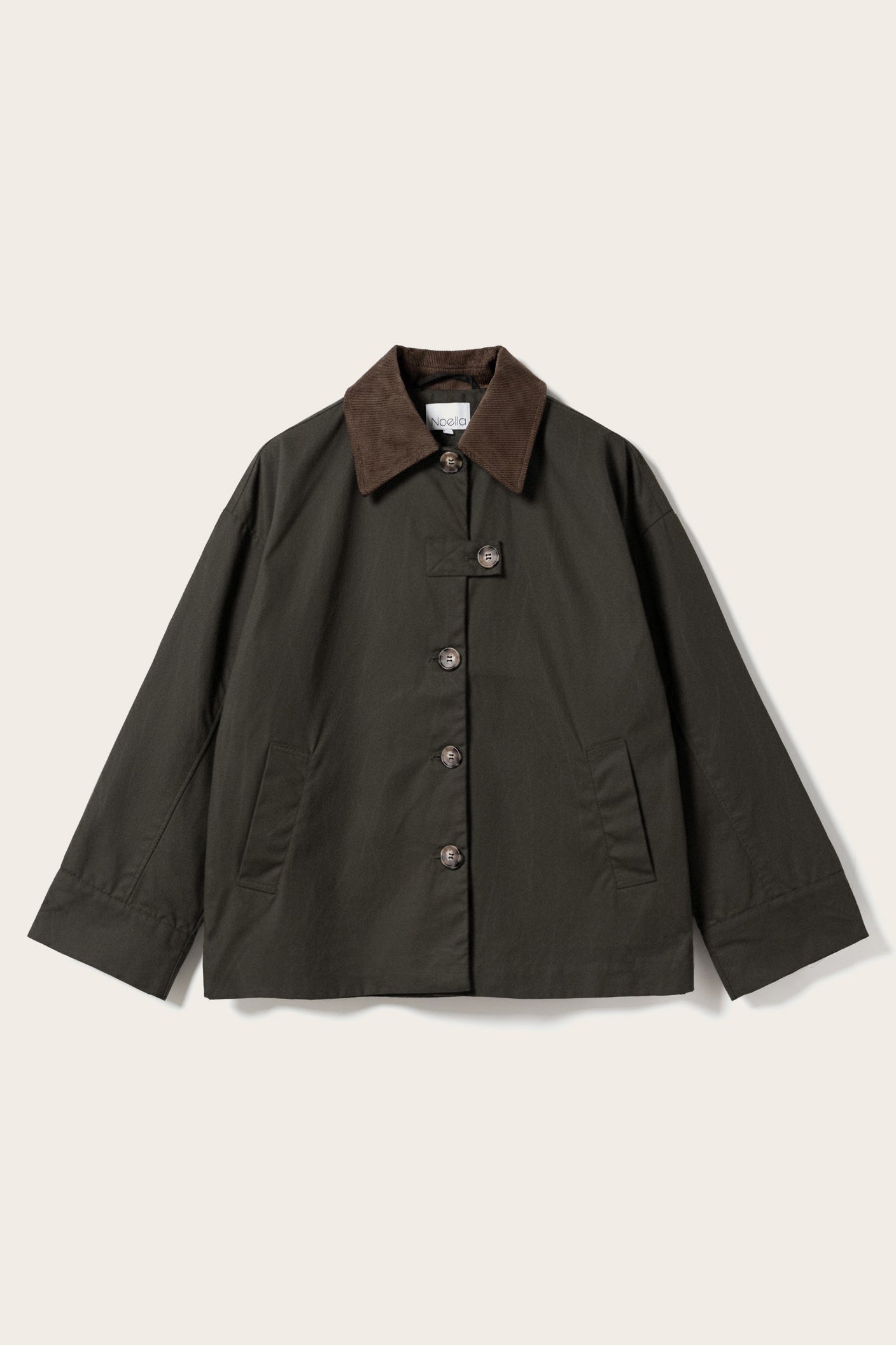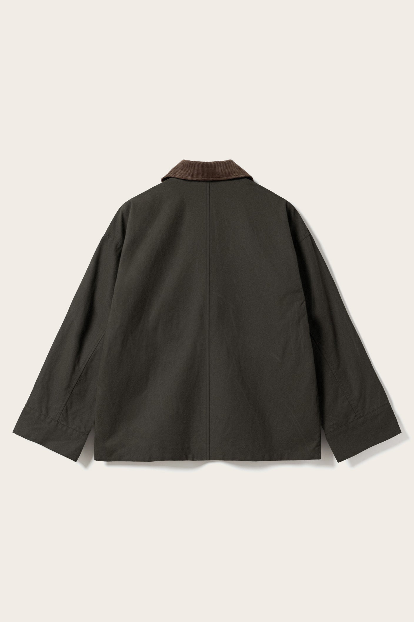 This jacket brings a timeless workwear silhouette into a modern wardrobe. Made from durable waxed cotton, it features a structured boxy fit, oversized sleeves, and a button-down front for a clean, functional look. The contrasting corduroy collar adds a heritage-inspired detail, while roomy pockets provide both practicality and edge. Ideal for layering over chunky knits or tailored basics — a go-to piece for transitional seasons and effortless, elevated outerwear.