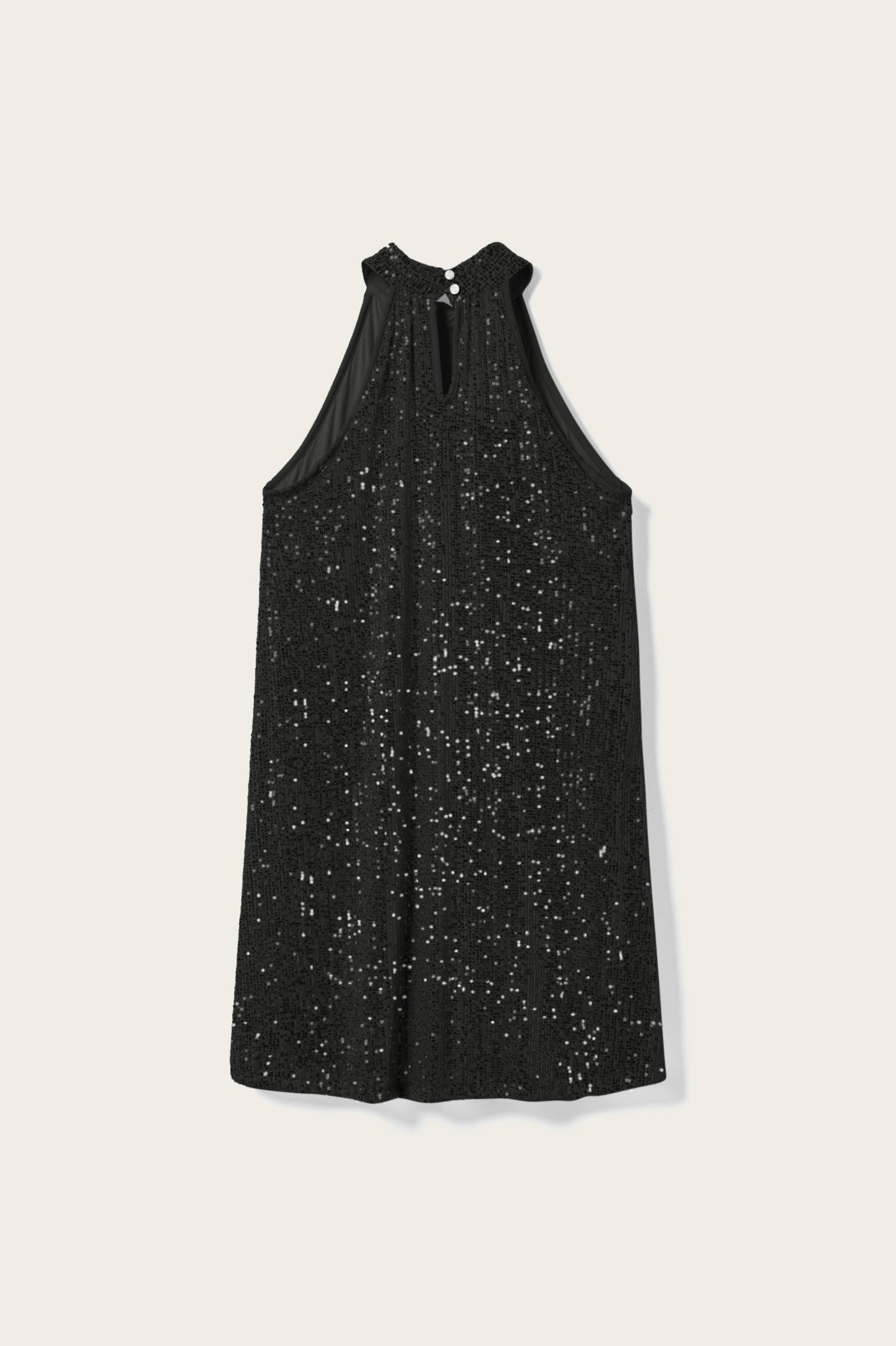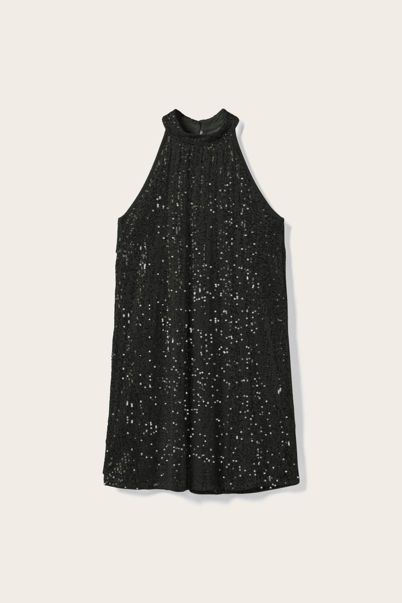 Luvena Dress is a short dress in an A-line silhouette with halterneck and sequins. Perfect as partywear.