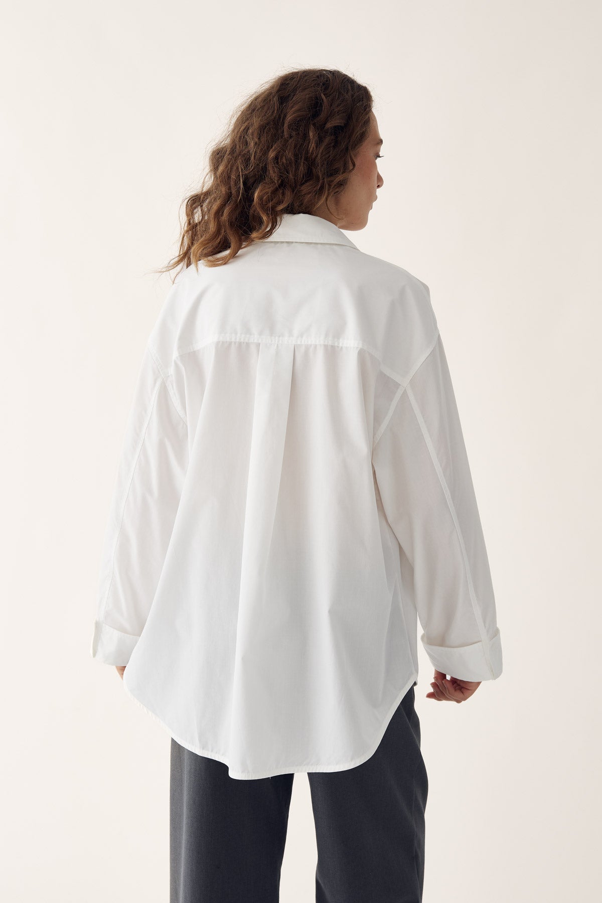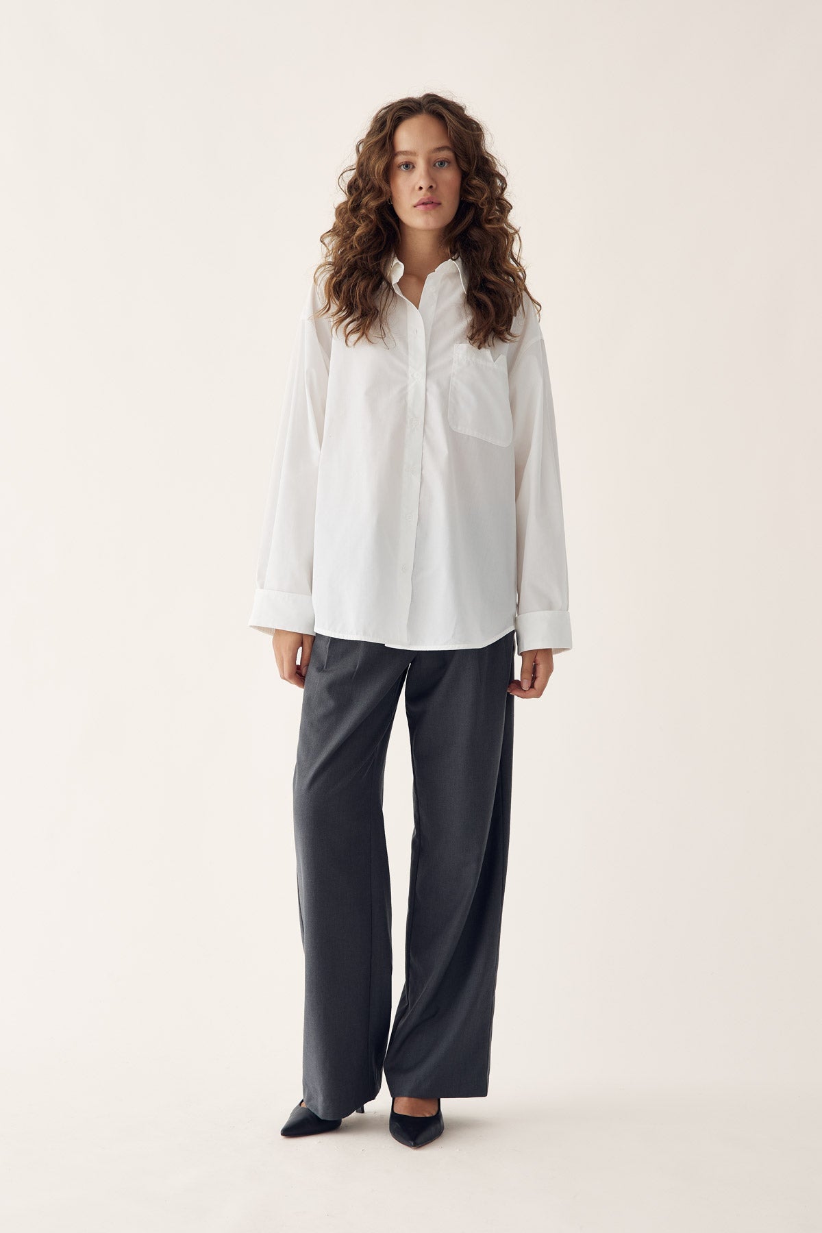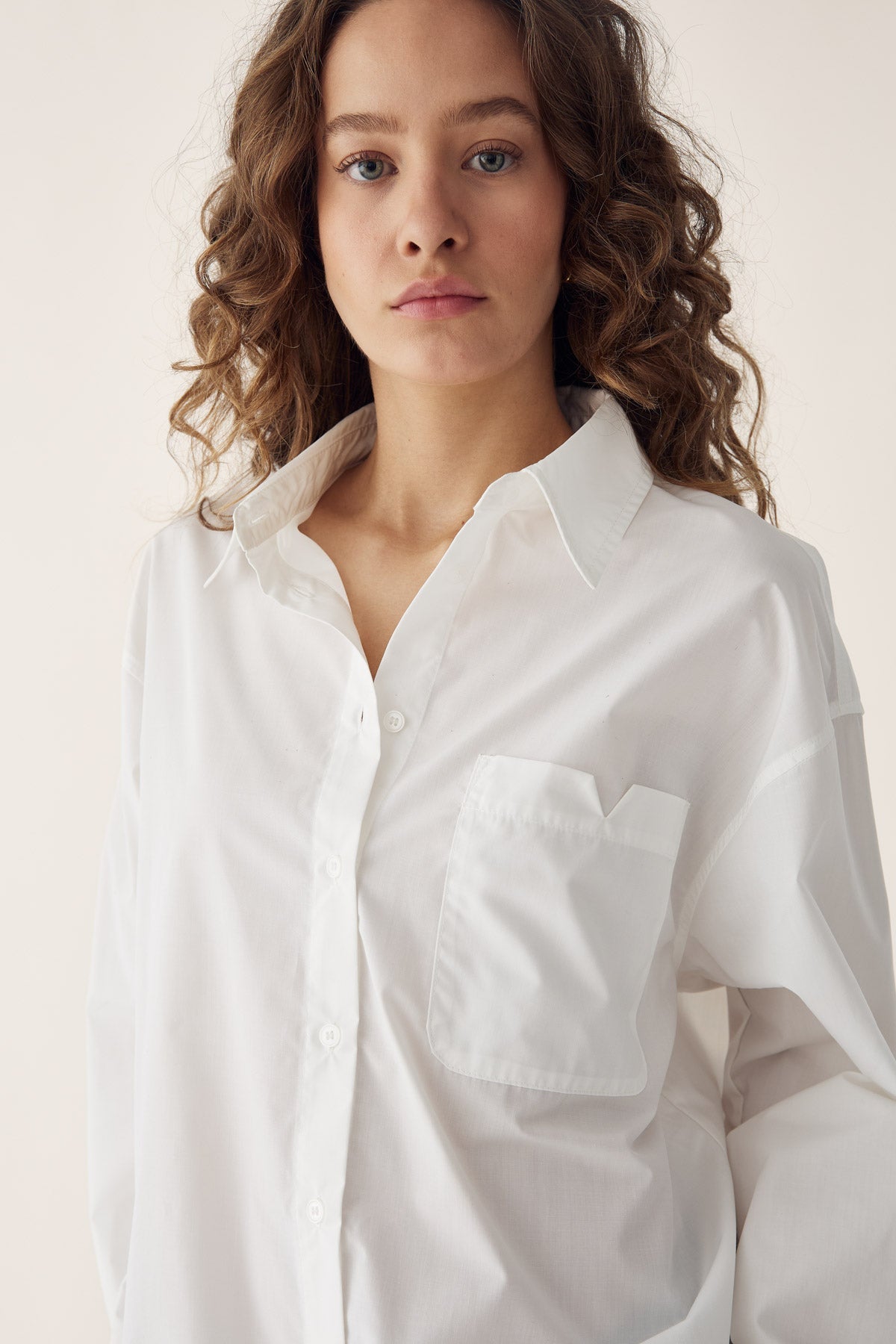 N-Marlon Shirt is the perfect balance of relaxed style with statement details. With its oversized fit and dropped shoulders, N-Marlon Shirt offers a laid-back silhouette. The large pocket with a unique cutout adds a twist, while the folded cuffs and stitching detailing enhance a modern vibe.